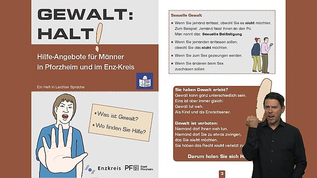 Die Angebote sind für Menschen, die zu Hause Gewalt erlebt haben oder sexualisierte Gewalt erfahren mussten. Die Videos sind in Gebärdensprache, damit auch Menschen mit einer Hörbehinderung die Informationen gut verstehen können.
