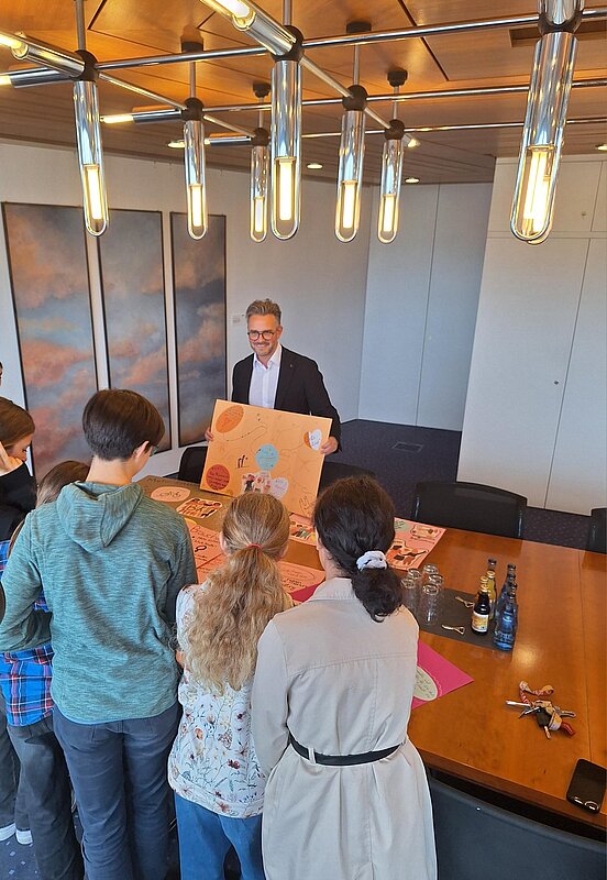 Der Tag startete mit einer Rallye durch das Rathaus, bei der die Teilnehmenden auf spielerische Weise das Gebäude und die verschiedenen Ämter kennenlernen konnten. Danach hatten die Schülerinnen und Schüler Zeit, sich mit ihrer Stadt zu beschäftigen: Welche Themen bewegen Jugendliche? Welche Fragen haben sie an die Stadtpolitik?