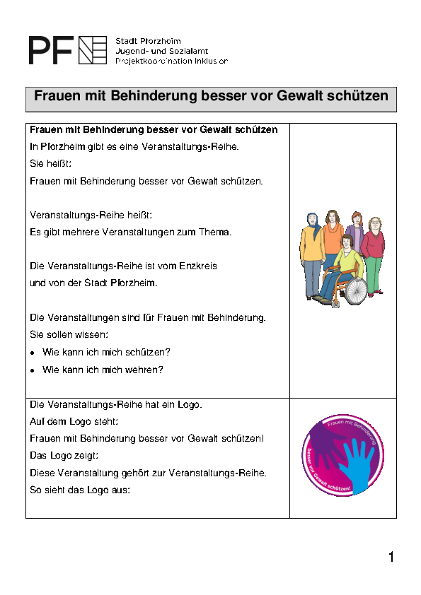 Frauen mit Lern-Behinderung besser vor Gewalt schützen.