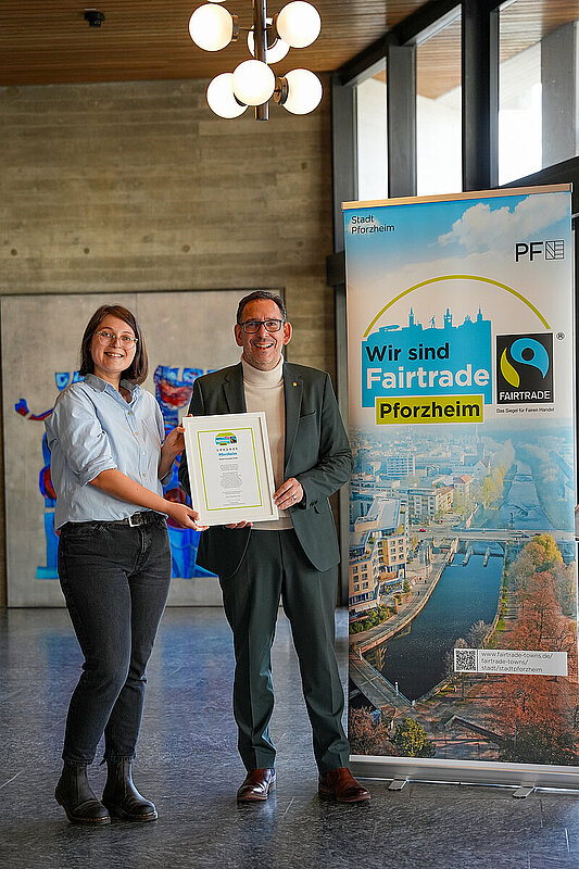 Vor sechs Jahren wurde die Stadt Pforzheim erstmals vom gemeinnützigen Verein TransFair e.V. für ihr Engagement im fairen Handel ausgezeichnet. „Die erneute und nunmehr dritte Auszeichnung bestätigt das große Engagement aller Beteiligten aus Politik, Zivilgesellschaft und Wirtschaft. Wir arbeiten eng zusammen, um den fairen Handel nachhaltig in Pforzheim zu verankern“, betont Bürgermeister Tobias Volle. „Ich bin stolz, dass unsere Stadt Teil des internationalen Netzwerks der Fairtrade-Towns ist. Wir setzen uns weiterhin mit viel Energie dafür ein, die Prinzipien des fairen Handels auf lokaler Ebene zu fördern. Damit leistet Pforzheim einen wichtigen Beitrag zu einer nachhaltigen Zukunft“, so Volle weiter.