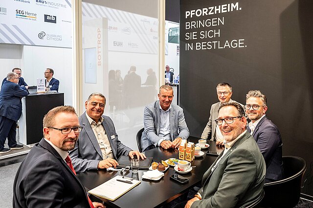 Austausch mit dem Projektentwickler Ten Brinke: Auch bei der diesjährigen Messe standen innerstädtische Projekte wie die Schlossberghöfe im Fokus.
