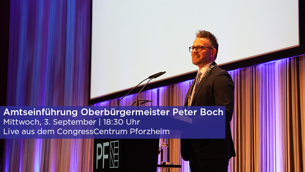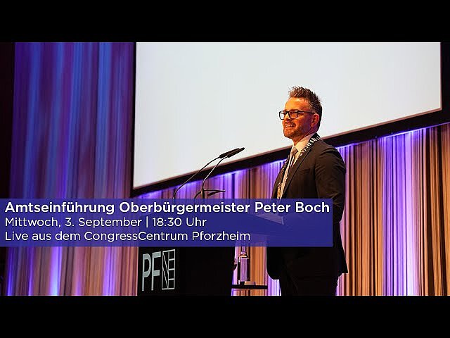 Heute Abend am Mittwoch, 3. September, findet um 18:30 Uhr die offizielle Amtseinführung von Oberbürgermeister Peter Boch im CongressCentrum Pforzheim statt. Alle Bürgerinnen und Bürger sind eingeladen vorbeizukommen!