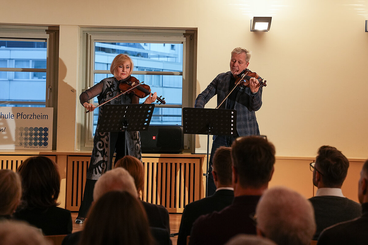 Für sein langjähriges Engagement im Dienst der politischen Bildung und Jugendbeteiligung wurde Wolfgang Berger am Dienstag, 28. Oktober, mit der Staufermedaille des Landes Baden-Württemberg geehrt. Oberbürgermeister Peter Boch überreichte die Auszeichnung in der Musikschule Pforzheim stellvertretend für Ministerpräsident Winfried Kretschmann, der damit die besonderen Verdienste Bergers um das Gemeinwohl würdigte. Vera und Georg Kleimann gestalteten als Duoline den musikalischen Rahmen. Im Anschluss an die feierliche Verleihung fand ein Stehempfang statt.
