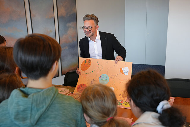 Im Gespräch mit den Mädchen nahm sich Oberbürgermeister Boch ausführlich Zeit, um über ihre Ideen, Wünsche und Forderungen zu sprechen. Dabei ging es um mehr Sicherheit und Mitbestimmung, geschützte Räume für Mädchen, kostenlose Hygieneartikel in öffentlichen Toiletten und bessere Verkehrsverbindungen. „Ich bin beeindruckt, mit wie viel Nachdruck und Kreativität die Mädchen ihre Anliegen formuliert haben“, sagte Oberbürgermeister Peter Boch. „Diese Schilder sind mehr als nur Symbole – sie sind ein sichtbares Zeichen dafür, dass junge Menschen mitreden und mitgestalten wollen. Die Ideen sind wichtig für unsere Stadt, und ich nehme sie sehr ernst.“