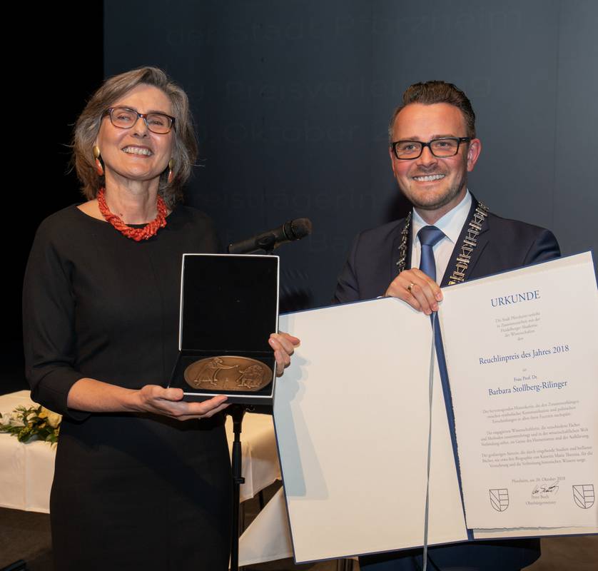 Am 20. Oktober 2018 wurde der Reuchlinpreis an die renommierte Historikerin und Lehrstuhlinhaberin Prof. Dr. Barbara Stollberg-Rilinger verliehen.