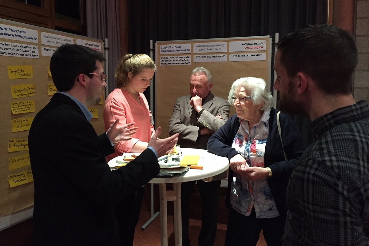 Die Nachbarschaftsgespräche wurden vom Land Baden-Württemberg im Jahr 2017 als ein neues Format der aufsuchenden Bürgerbeteiligung entwickelt und erprobt. Pforzheim wurde neben Mannheim und Freiburg als einer von drei Modellstandorten ausgewählt.
