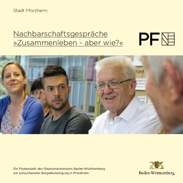 Im Rahmen des Pilotprojekts wurden in Pforzheim im Jahr 2017 unter dem Titel „Nachbarschaftsgespräche: Zusammenleben – aber wie?“  in den vier Stadtteilen Haidach, Weststadt, Oststadt und Büchenbronn Nachbarschaftsgespräche durchgeführt. Dabei haben in mehreren Veranstaltungen vor Ort in den Stadtteilen jeweils zehn bis 15 zufällig ausgewählte Bewohnerinnen und Bewohner intensiv darüber diskutiert, was ihren Stadtteil ausmacht und wie man sich zukünftig das Zusammenleben im Stadtteil vorstellt.