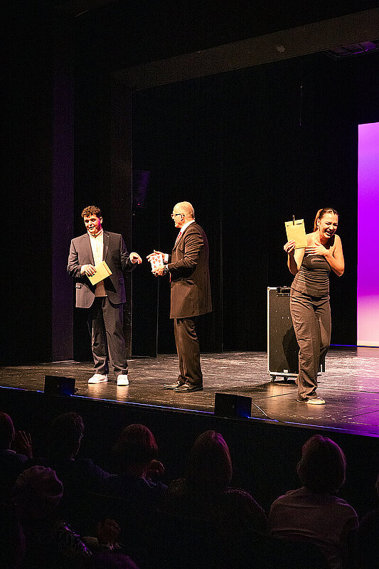 Begleitet und moderiert wurde der Abend durch das Team des Improvisationstheaters Q-rage mit Sandra Hehrlein und Jörg Pollinger sowie Michael Fiedler am Piano. Charmant improvisierten die beiden Moderatoren was auf der Bühne gesagt wurde oder in Interviews mit den geehrten Personen vorgegeben wurde. Dazu gehörte unter anderem die Begrüßungsrede von Boch, die von Pollinger in einzelne Worte zerlegt und mit ganzem Körpereinsatz dargestellt wurde.