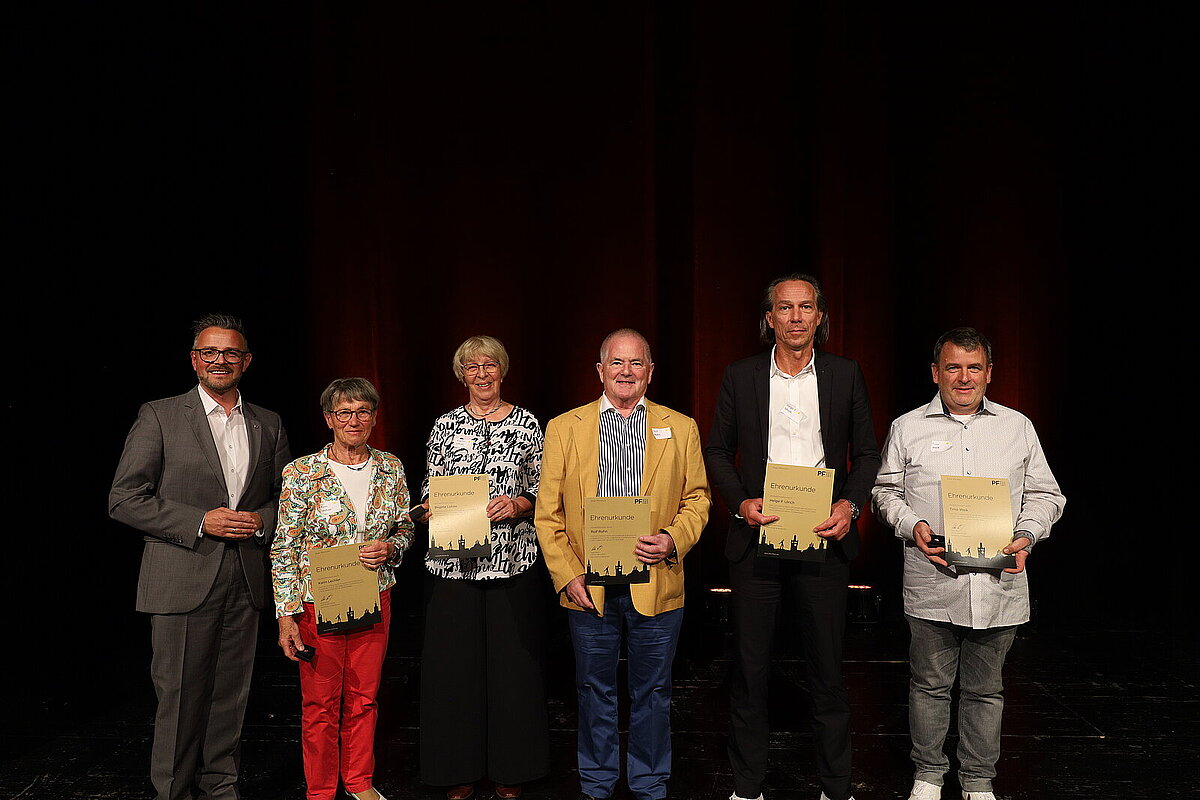 Am Mittwochabend, 1. Oktober, wurden im Kulturhaus Osterfeld auf dem vierten Pforzheimer Ehrungsabend fünf gemeinnützige Projekte und 34 Einzelpersonen in insgesamt fünf Kategorien durch Oberbürgermeister Peter Boch für ihr außergewöhnliches bürgerschaftliches Engagement geehrt.