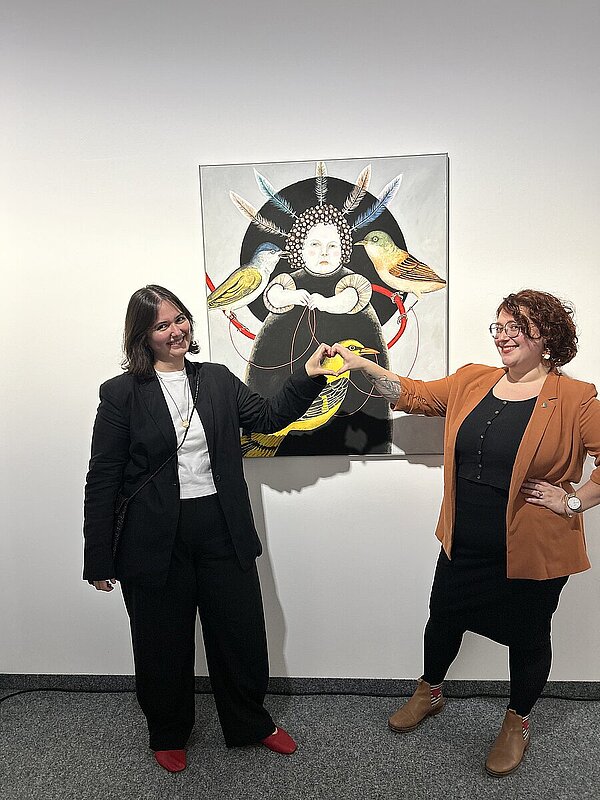 Am Abend folgte der feierliche Empfang zum 8. März in der Pforzheim Galerie – ein voller Erfolg mit über 120 Gästen. Die Veranstaltung, die in Kooperation mit dem Kulturamt stattfand, wurde inmitten der Ausstellung „<10 Prozent – Künstlerinnen aus der städtischen Sammlung“ ausgerichtet. Im Fokus standen die Themen Solidarität, Repräsentanz und Respekt. Bürgermeister Tobias Volle eröffnete den Abend mit einem Grußwort, gefolgt von Beiträgen der Kuratorin Regina M. Fischer und der Gleichstellungsbeauftragten Nur Bakkar, die die Bedeutung von Sichtbarkeit und Teilhabe betonte.