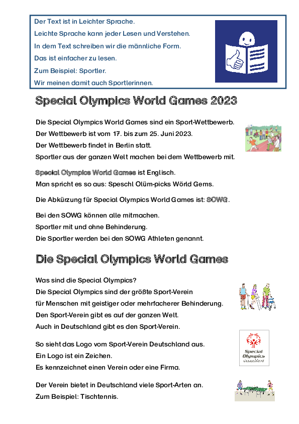 Die Abkürzung für Special Olympics World Games ist: SOWG.