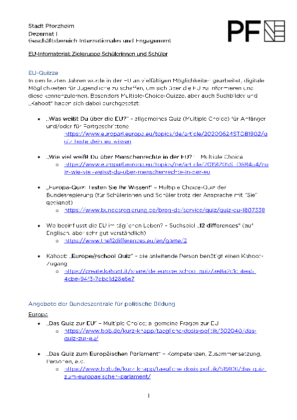 Im Erdgeschoss des Neuen Rathauses finden Sie bei der Pforte zahlreiche Publikationen und Informationen über die EU. Auch in der Stadtbibliothek Pforzheim können Sie verschiedene Bücher zu Europa ausleihen.