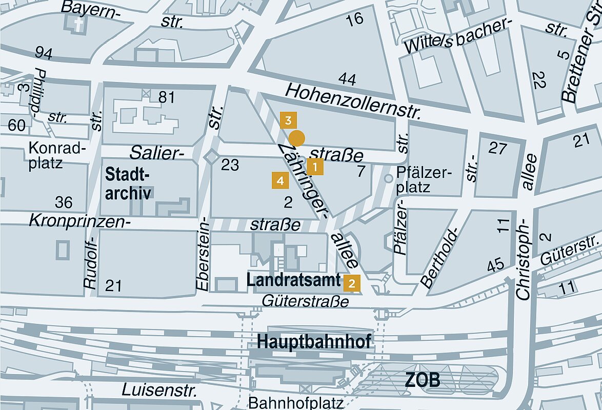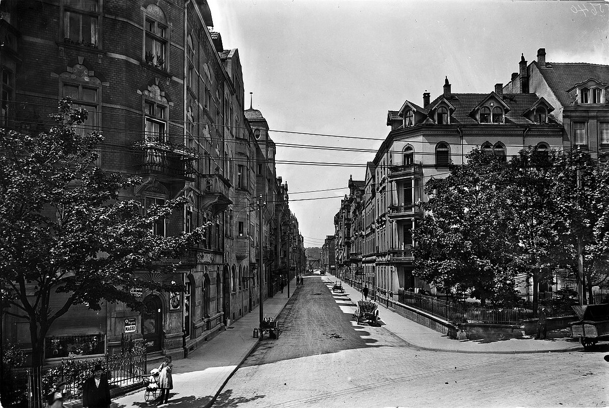 An eye-catcher in the "Zähringerallee" is the Jugendstil-corner house no. 27/29 of the year 1906, which is decorated with oriels, tracery, pointed archs and stepped gables in style forms of late neo-Gothic. The duplex house was created as common work of the architect Carl Hamm from Pforzheim and his brother-in-law, the scultpor Gustav Schultheiß, who both lived and worked there.