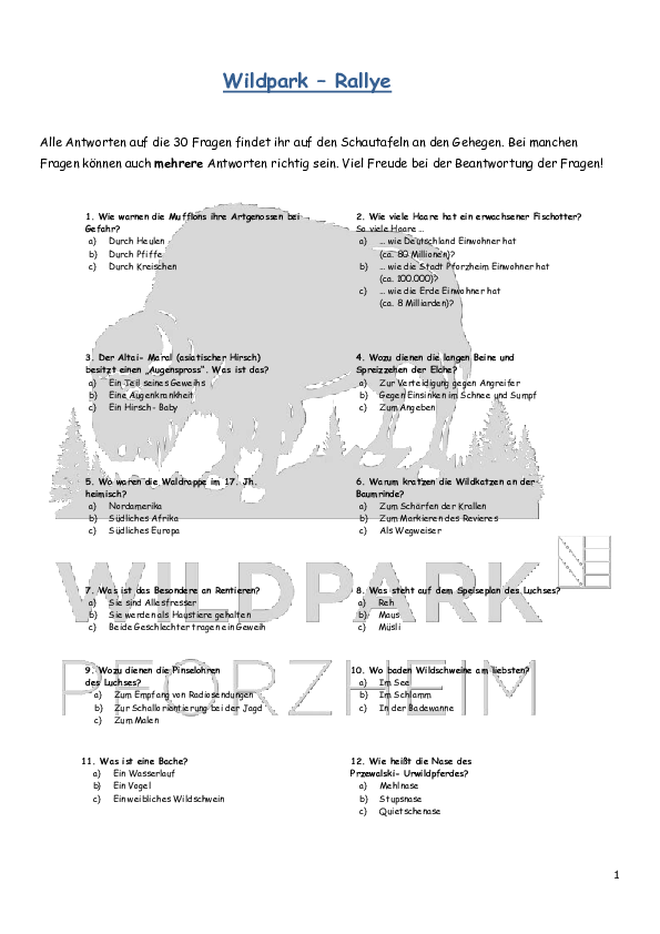 Wildpark-Rallye 194 KB Alle Antworten auf die 30 Fragen findet ihr auf den Schautafeln an den Gehegen.