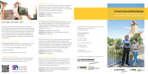 Mit der Future History App von Extended Vision begeben Sie sich auf eine selbstgeführte Tour mit Ihrem Smartphone oder Tablet. Entdecken Sie die Vergangenheit Pforzheims als interaktives Erlebnis und lauschen Sie den Erzählungen zur Vergangenheit und Gegenwart der Goldstadt!