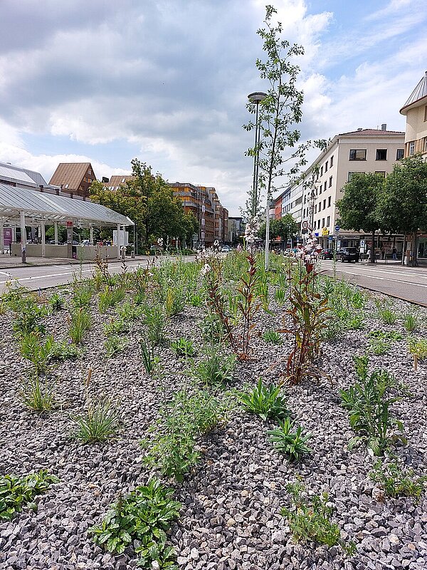 Die Umgestaltung verschönert nicht nur die Zerrennerstraße, sondern schafft auch wertvollen Lebensraum für heimische Insektenarten und trägt zudem zur Verbesserung des städtischen Mikroklimas bei.