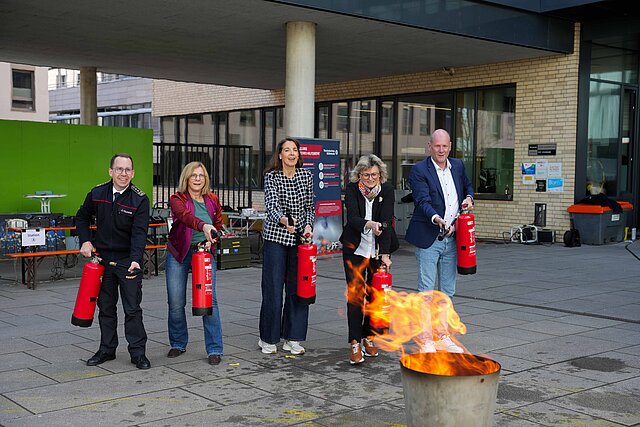 Zum Aktionstag waren die sechsten Klassen der weiterführenden Pforzheimer Schulen, insgesamt rund 1.500 Schülerinnen und Schüler mit ihren Lehrerinnen und Lehrern, eingeladen. Das Thema Katastrophenschutz ist seit kurzer Zeit auch in den Lehrplänen der sechsten Klassen verankert. Der Aktionstag soll dahingehend die theoretische Wissensvermittlung im Unterricht mit praktischen Anteilen aus dem Aufgabenspektrum des Katastrophenschutzes verbinden. Dabei kamen die Schülerinnen und Schüler direkt mit den ehrenamtlichen Helferinnen und Helfern des Deutschen Roten Kreuzes (DRK), der Deutschen Lebensrettungsgesellschaft (DLRG), der Bergwacht, dem Technischen Hilfswerk (THW) sowie der Feuerwehr ins Gespräch und konnten Fragen zu den vorab im Unterricht diskutierten Themen stellen sowie ihr Wissen an den verschiedenen Info-Ständen erweitern. „Gerade bei jungen Menschen soll das Interesse am wichtigen Thema Katastrophenschutz geweckt werden. Dies stärkt die Resilienz in der gesamten Bevölkerung“ erläuterte Sicherheitsdezernent und Erster Bürgermeister Dirk Büscher das Ziel des Aktionstages. Er informierte sich gemeinsam mit Schuldezernent Frank Fillbrunn sowie der Leiterin des Amts für Bildung und Sport, Claudia Schlütter und Feuerwehrkommandant Sebastian Fischer in der Bertha-Benz-Halle und auf dem Pausenhof des Hilda-Gymnasiums über den ersten Aktionstag dieser Art für die Pforzheimer Schulen.