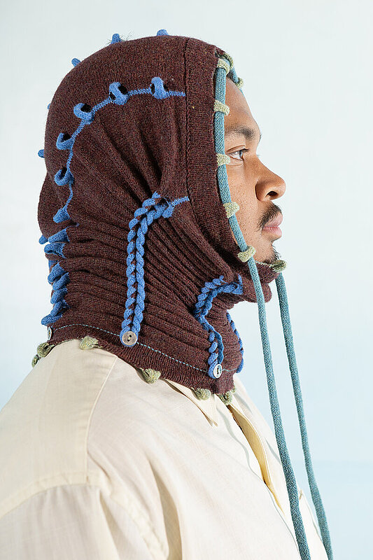 Die Textildesignerin Leen Stoffels möchte mit ihrem Projekt „Modular knitting“ ein Zeichen gegen die Wegwerf- und Fast Fashion-Kultur setzen. „Nachhaltigkeit und Umweltschutz waren schon immer eine große Motivation für meine Arbeit. Mit meinem Projekt wollte ich daher einen Weg finden, das Bedürfnis der Menschen nach Abwechslung und Innovation zu befriedigen und dennoch nachhaltig zu sein“, sagt Leen Stoffels. Durch die Einbeziehung verschiedener Strick- und Knüpftechniken entwickelte Leen ein modulares System, bei dem die Form und Dichte des Textils je nach der Funktion angepasst werden kann. Nachhaltigkeit spiegelt sich dabei nicht nur in der Materialwahl wider – die Stücke werden aus Merinowolle gestrickt -, sondern auch in der Gestaltung der Objekte und Kleidungsstücke. Leen entwirft bewusst tragbare und nutzbare Stücke, die nicht nur zeitlos, sondern auch modular und damit anpassbar sind und hofft, so den Verbrauch von Produkten zu reduzieren. Jedes Objekt kann mit Hilfe einer einfachen Anleitung und den einge-strickten Modulsystemen in Form und Passform verändern werden und sich in Kleidungsstücke, Inneneinrichtung oder andere Gebrauchsgegenstände verwandeln. Dies ist durch die Verwendung von Schlingen und Zugsystemen möglich. So entwarf sie beispielsweise eine Decke, die unter anderem in ein Kissen oder einen Schal umgewandelt werden kann, oder Stulpen, die an Armen, Beinen oder auch als Tasche in verschiedenen Größen getragen werden können. „Das Stipendium hat mir geholfen, meine Arbeit unabhängig weiterzuentwickeln und als Designerin zu wachsen“, freut sich Leen Stoffels.
