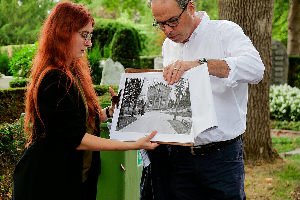 Am Dienstag, 13. September fand auf dem Hauptfriedhof am späten Nachmittag ein Rundgang mit Bürgermeisterin Sibylle Schüssler, Mitgliedern des Gemeinderats und Mitarbeitenden des Grünflächen und Tiefbauamts sowie des Dezernats II statt. Dabei wurde die durch das Landschaftsarchitekturbüro Wölffing-Seelig erstellte „Denkmalpflegerische Zielplanung“ näher erläutert. Die Führung und Moderation des Rundgangs übernahmen Ralph Wölffing-Seelig und Wiebke Reichardt.