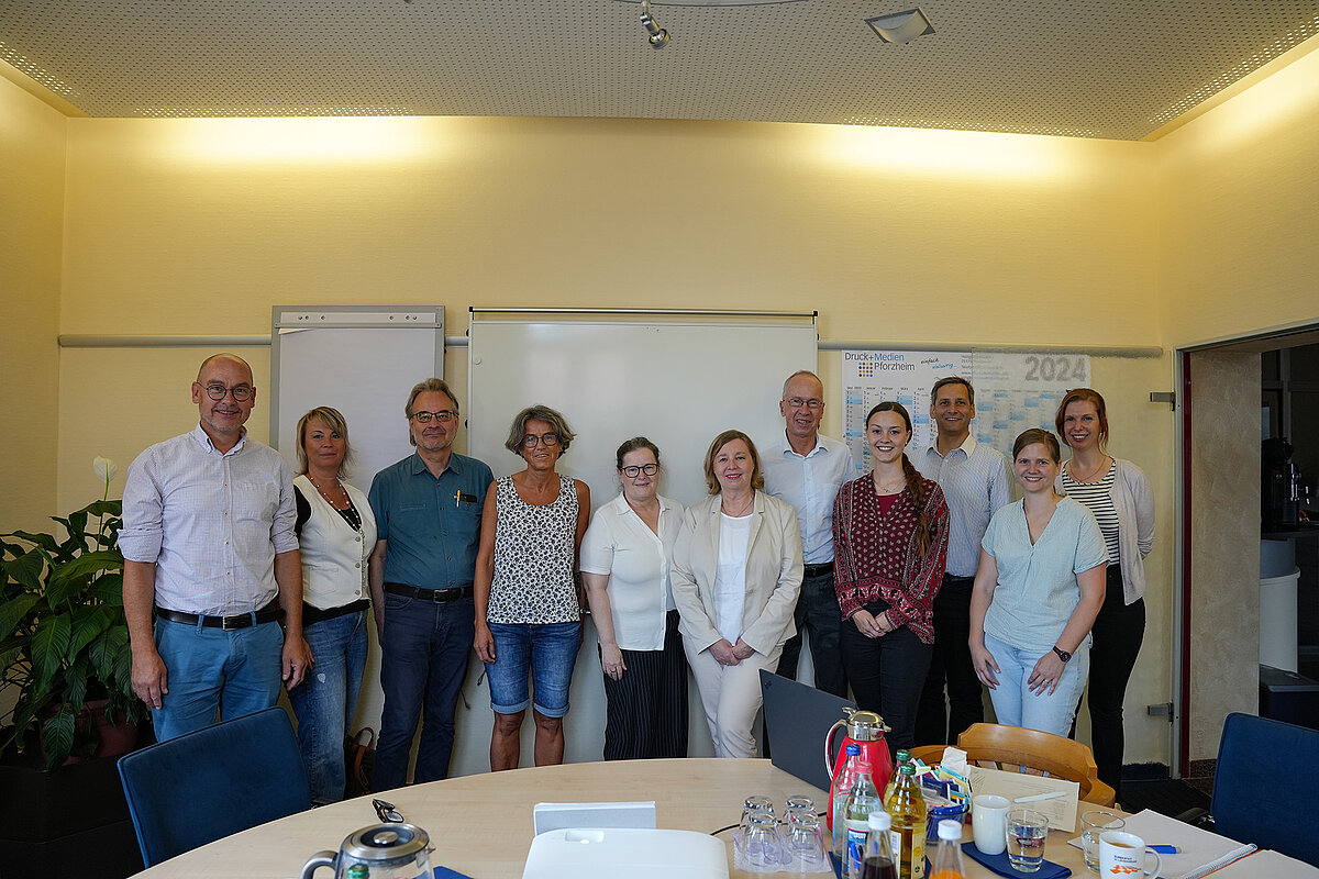 Steuerungsgruppe Bündnis für Familien: v.l.: Thomas Lutz, Liga der Wohlfahrtsverbände, Susanne Nittel von der DGB, Uwe Jung-Pätzold, Abteilungsleitung Soziale Dienste, Stadt Pforzheim, Alison Bussey, Stadtjugendring Betriebs gGmbH, Doris Möller-Espe vom Kinderschutzbund, Anita Gondek, Integrationsbeauftragte der Stadt Pforzheim, Sozialbürgermeister Frank Fillbrunn, Juliane Wagner, Koordination Bündnis für Familien/ Familienfreundliche Stadt, Stadt Pforzheim, Joachim Hülsmann, Amtsleitung JSA, Stadt Pforzheim, Mirjam Bußmann von der städtischen Jugend- und Familienförderung und Jasmin Jonietz, Koordination Familienfreundliche Stadt, Stadt Pforzheim.