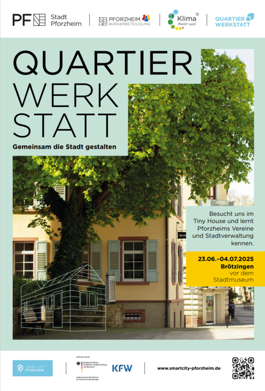 Nach dem großen Zuspruch im vergangenen Jahr lädt die Quartier | Werkstatt 2025 gleich zweimal zum Austausch zwischen Stadtverwaltung und Bürgerschaft ein: zunächst im Sommer in Brötzingen und anschließend im Herbst in Dillweißenstein. Von Montag, 23. Juni bis Freitag, 4. Juli verwandelt sich der Platz vor dem Stadtmuseum in Brötzingen in eine kreative Begegnungszone. Ziel ist es, als Stadtverwaltung näher an die Menschen heranzurücken und die lokale Bevölkerung durch Austausch und Zusammenarbeit aktiv mit einzubeziehen. Herzstück ist erneut das Tiny House, das als mobiles Aktions- und Informationszentrum allen Interessierten offensteht. Das Programm verspricht ein abwechslungsreiches Angebot, das Einblicke in städtische Themen gibt, zum Ausprobieren anregt und Raum für Dialog schafft.