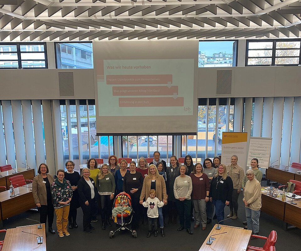 Am 18. November fand im Neuen Rathaus die Auftaktveranstaltung des E-Learning Kurses „Kommun@l Online - Frauen verändern Ihre Stadt" statt. Bürgermeisterin Sibylle Schüssler begrüßte die 21 Teilnehmerinnen der Seminarreihe, darunter die Stadträtinnen Stefanie Barmeyer und Nicole Gaidetzka sowie die Kooperationspartnerinnen der Landeszentrale für politische Bildung (lpb).