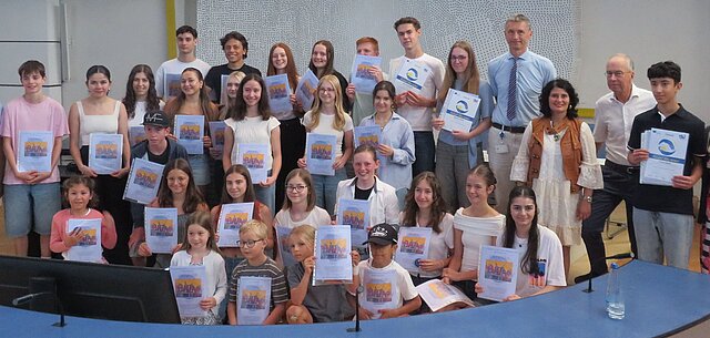 Strahlende Gesichter bei den Jugendlichen, die im letzten Jahr Preise aus der Hand von Sozialbürgermeister Frank Fillbrunn, Sunita Vimal und Enzkreis-Bildungsdezernent Frank Stephan erhielten.