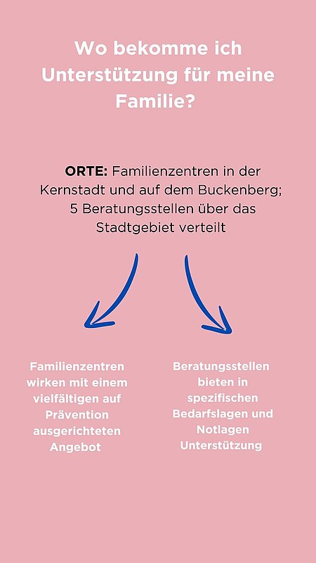 Wenn man allerdings Unterstützung für seine Familie benötigt, wendet man sich am besten an die Familienzentren in der Kernstadt oder auf dem Buckenberg. Außerdem gibt es über das Stadtgebiet verteilt 5 Beratungsstellen für Hilfe in Bedarfs- und Notlagen.