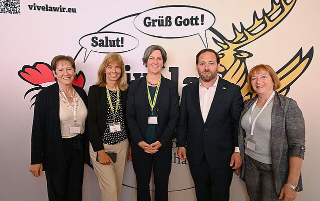 Ebenso fand ein moderiertes Podiumsgespräch mit Staatssekretär Florian Hassler und Évelyne Isinger, Regionalrätin der Région Grand Est, statt. Themen waren die Entstehungsgeschichte der Partnerschaften, aktuelle Herausforderungen sowie neue Strategien für eine lebendige und zukunftsfähige Zusammenarbeit.