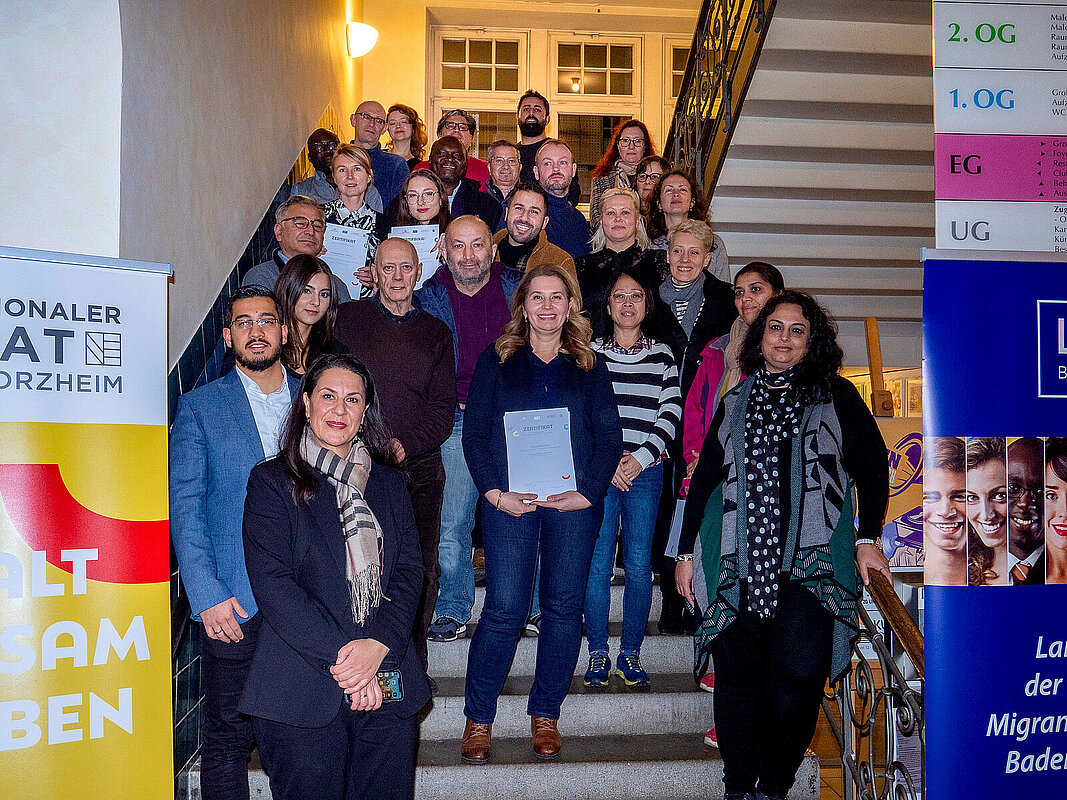 Der Internationale Beirat der Stadt Pforzheim hat in Kooperation mit dem Landesverband der kommunalen Migrantenvertretungen Baden-Württemberg (LAKA) mehrere Workshops zur politischen Bildung angeboten und die Schulungsreihe nun erfolgreich abgeschlossen. Im Anschluss an das fünfte und letzte Modul fand eine feierliche Zertifikatsübergabe an die Teilnehmenden statt. „Das Thema im letzten Workshop war Migration und Politik. Die Kursteilnehmerinnen und -teilnehmer waren sehr interessiert, so dass die drei Stunden kaum ausreichten. Insgesamt waren die Workshops ein voller Erfolg“, freut sich Emine Akyüz von der Geschäftsstelle Internationaler Beirat. Ziel der Politikworkshops war es, Menschen mit und ohne Migrationshintergrund das nötige Wissen zu vermitteln, um am politischen und kulturellen Leben der Stadt teilhaben können und sich aktiv in die Prozesse einbringen können. Insgesamt fanden fünf Workshops mit Begleitprogramm statt.