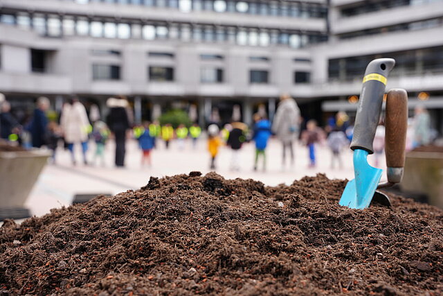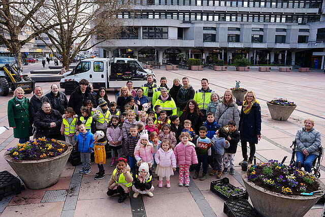 Rund 35 Kinder und 10 Seniorinnen und Senioren haben an diesem Mittwoch wieder mit angepackt und gemeinsam die Betonkübel mit Frühlingsflor bepflanzt. Diese werden anschließend auf dem Marktplatz und in der Fußgängerzone verteilt. „Damit holen wir nicht nur den Frühling zu uns, sondern steigern ganz nebenbei noch die Aufenthaltsqualität in unserer Innenstadt“, ergänzte Boch und pflanzte ein Hornveilchen.