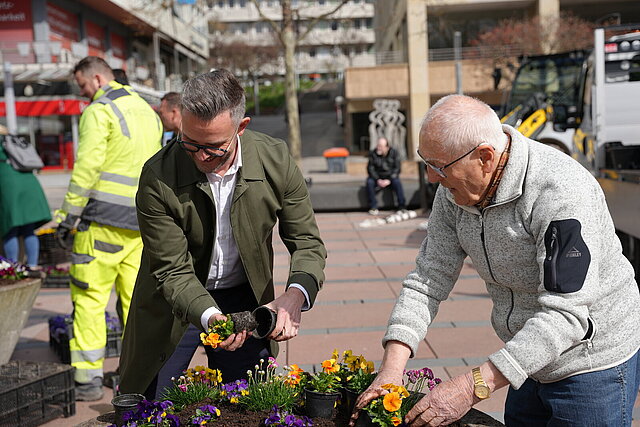Kinder und Senioren sorgen gemeinsam für eine blühende Innenstadt