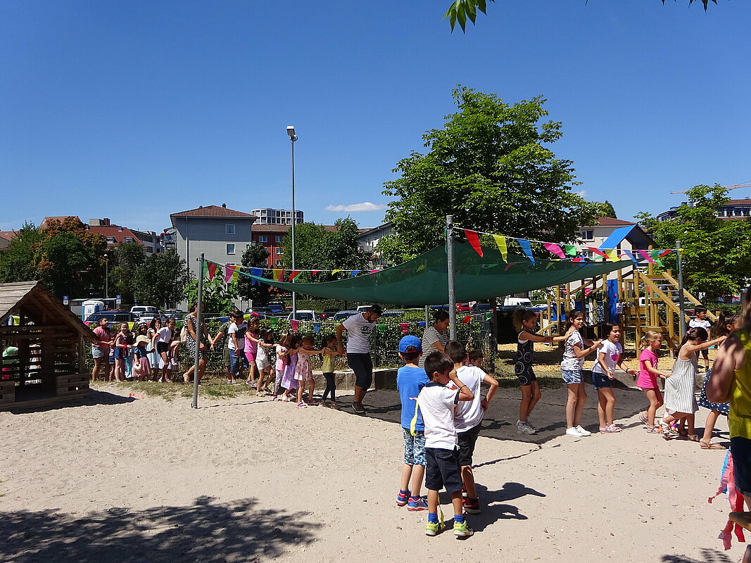 Bei schönstem Sonnenschein haben über 100 Kinder gemeinsam mit ihren Familien ein buntes Sommerfest in der Kita am Emma-Jaeger-Bad gefeiert. In diesem Rahmen durften die Kinder ihr neues Klettergerüst, das „Piratenschiff“, in Betrieb nehmen.