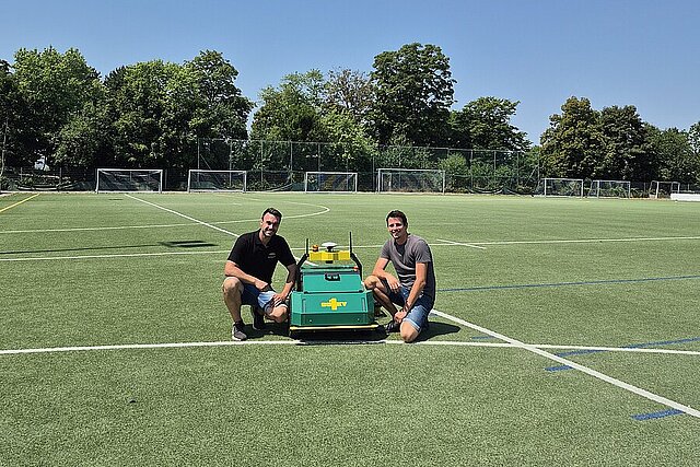 Pforzheims Kunstrasenplätze werden künftig von Kunstrasenpflegeroboter „BUKY ONE“ gepflegt und heben die Spielfeldpflege damit auf ein neues Level. „Mit dem „BUKY ONE“ setzen wir als Stadt im Rahmen unseres Smartcity-Projekts „Klimaneutrale Sportplätze“ ein starkes Zeichen für Innovation und Nachhaltigkeit“, begrüßt Oberbürgermeister Peter Boch den neusten Zuwachs bei den Technischen Diensten. Pforzheim ist damit deutschlandweit neben Städten wie Ulm oder Frankfurt die fünfte Stadt, die mit dem BUKY ONE arbeitet. Durch die Pflege des autonomen Roboters der Firma Sandmaster werden die Kunstrasenplätze künftig widerstandsfähiger, gleichmäßiger und länger bespielbar. Insgesamt pflegt der BUKY ONE fünf Kunstrasenplätze in Pforzheim. Für einen Pflegedurchgang benötigt er rund dreieinhalb Stunden.