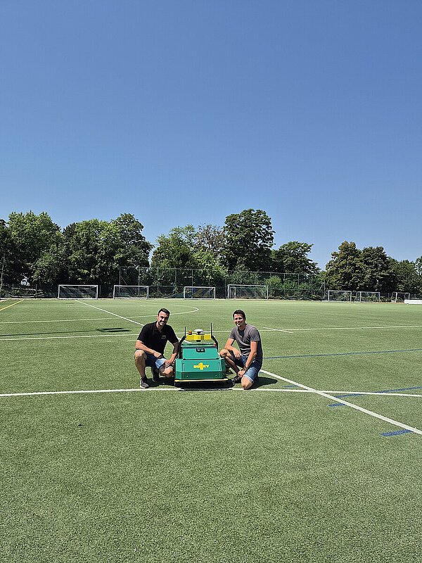 Nachdem der Roboter per App eine kurze Vermessung der Plätze vorgenommen hat, werden die Bahnen festgelegt und Unebenheiten ausgeglichen. Der Start erfolgt per Bordcomputer oder per App. Mit der Bürsten- und Federzinkentechnik wird das Verfüllmaterial gelockert, der Quarzsand gleichmäßig verteilt und die Grasfasern wieder aufgestellt, dass Verschleißerscheinungen künftig merklich abnehmen sollen. Außerdem erkennt der Roboter dank einer intelligenten Sensorik Hindernisse und bremst selbstständig ab. Er sammelt außerdem mit Hilfe eines Magneten Kleinteile aus Metall ein, die eine mögliche Verletzungsgefahr darstellen oder den Kunstrasenbelag zerstören. Nach jedem Einsatztag wird der Akkubetriebene Roboter auf dem Betriebshof der Technischen Dienste wieder aufgeladen. „Der Roboter entlastet, schont Ressourcen und verschafft den Vereinen mehr verlässliche Spielzeit“, Philipp Linde, Abteilungsleiter Digitale Verwaltung. Weniger manuelle Eingriffe in die Kunstrasenpflege bedeuten gleichzeitig einen geringeren Wasser- und Energieverbrauch und mehr Zeit für den schönen Teil des Fußballsports. „Mit dem „BUKY ONE“ investieren wir in langlebige Spielfelder und entlasten zugleich unsere Technischen Dienste“, so Linde. „Damit stärken wir den Sport in Pforzheim und setzen ein Zeichen für nachhaltige Innovation.“