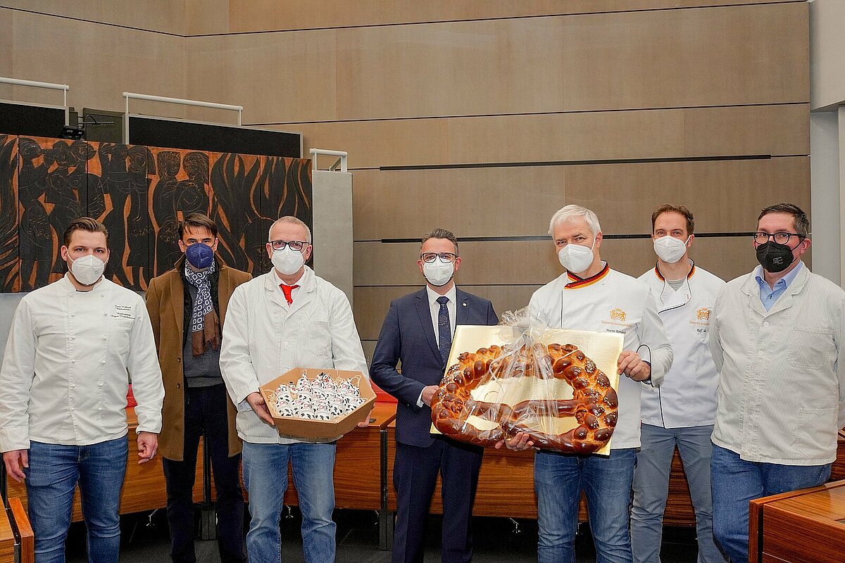 Sowohl der Kreis- wie auch der Rathauschef nutzten die Gelegenheit, um sich bei Kreishandwerksmeister Frank Herrmann und den Obermeistern der Bäcker-Innung und der Fleischer-Innung Pforzheim-Enzkreis Martin Reinhardt und Andreas Beier für die vertrauensvolle Zusammenarbeit und Engagement übers Jahr zu bedanken. „Wie wichtig das Handwerk für unser alltägliches Leben ist und wie abhängig wir teilweise von globalen Entwicklungen geworden sind -  auch das zeigt die Pandemie an vielen Stellen schmerzlich auf“, so der Kreischef.