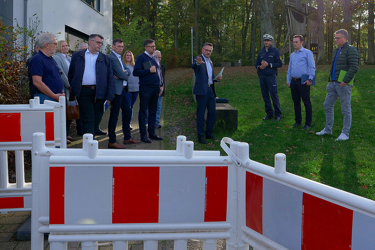 Oberbürgermeister Peter Boch setzt den Dialog mit den Anwohnerinnen und Anwohnern im Tiergarten fort. Nachdem sich der Rathauschef bereits am vergangenen Montag gemeinsam mit der Polizei und den zuständigen Fachämtern zu einem Vor-Ort-Termin an der Stelle getroffen hatte, an der ein sieben-jähriger Junge bei einem tragischen Unfall ums Leben gekommen war, konnten bereits unmittelbar danach erste Gespräche mit Anwohnern geführt werden. Zudem wurde als provisorische Maßnahme am Ausgang des Weges, der auf die Straße führt, ein sogenannter Z-Übergang angebracht. Dabei handelt es sich um zwei in Z-Form versetzte Querabsperrungen aus Kunststoffbauzäunen.