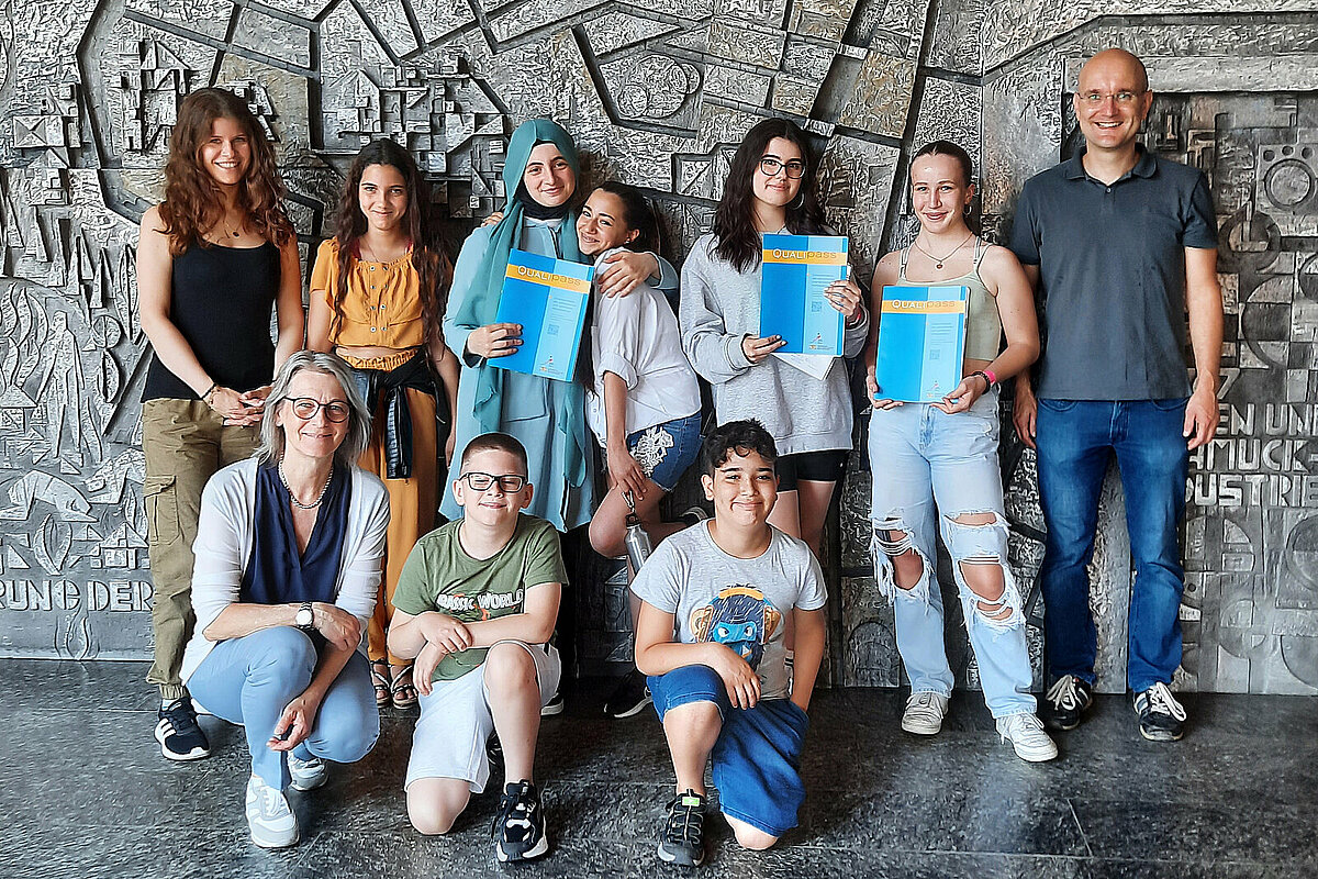 Fast ein ganzes Schuljahr haben zehn Schülerinnen der Klassenstufen 9 und 10 des Hilda-Gymnasiums Schülerinnen und Schülern aus verschiedenen Pforzheimer Schulen Nachhilfe gegeben – und dies als Ehrenamt. In einer 1:1 Betreuung setzten sie sich für Kinder und Jugendliche ein, denen es aus verschiedenen Gründen schwerfällt, regelmäßig in die Schule zu gehen. Die Ursachen von Schulvermeidung sind vielfältig, die Folgen jedoch meist Lernlücken im Stoff, die durch die Fehlzeiten entstehen. Der Schwerpunkt Schulvermeidung der Pforzheimer Schulsozialarbeit konnte nach drei Jahren Corona-Pause wieder das sogenannte „Patenmodell“ aktivieren, bei dem sich die Schülerinnen des Gymnasiums einmal wöchentlich als Patinnen für verschiedene Schülerinnen und Schüler aus den Klassen 2 bis 9 zur Verfügung stellten. Als Abschluss und als Belohnung für ihr vorbildliches Engagement fand am 23. Juni im Pforzheimer Rathaus die Verleihung der Urkunden statt. Markus Flattich, Koordinator des Schwerpunkts Schulvermeidung, war sehr angetan, dass die Patinnen sich in ihrer Freizeit regelmäßig freitagnachmittags, wenn andere schon ins Wochenende gehen, für ihre Mitmenschen Zeit nahmen. Aber auch die Patenschülerinnen und Patenschüler wurden gelobt, dass sie die Hilfe aktiv angenommen haben, obwohl es mit der Zuverlässigkeit bei ihnen nicht immer so einfach ist. Cornelia Leistner, Sachgebietsleitung der Jugendsozialarbeit an Schulen, wünschte den Anwesenden, dass die Urkunden ihnen eine zusätzliche Hilfe bei späteren Bewerbungen sind. Als gemeinsamen Abschluss ging es dann noch zur Lama-Wanderung auf den Buckenberg, wo die Lernteams einmal etwas ganz Besonderes für sich erleben und genießen durften.