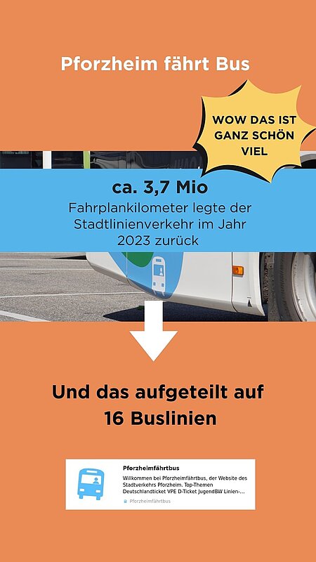 Und zu guter Letzt noch ein paar Fakten zum Thema Verkehr. Genauer gesagt zum ÖPNV in Pforzheim. In unserer Stadt gibt es 16 Buslinien, die dich von A nach B bringen und diese haben dabei im Jahr 2023 ca. 3,7 Mio. Fahrplankilometer zurückgelegt. Wow, das ist ganz schön viel!