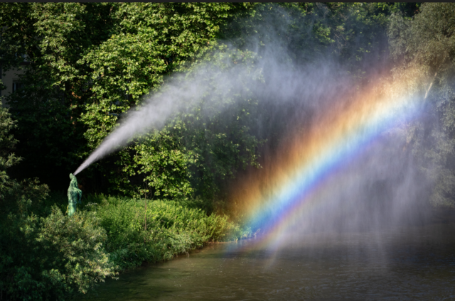 Das Regenbogenphänomen ist zu den folgenden Sprühzeiten zu erleben: Im Juni noch zwischen 8.15 Uhr und 9.15 Uhr sowie zwischen 17.45 Uhr und 18.45 Uhr, im Juli zwischen 8.30 Uhr und 9.30 Uhr sowie zwi-schen 17.30 Uhr und 18.30 Uhr und im August zwischen 8.45 Uhr und 9.45 Uhr sowie zwischen 17.15 Uhr und 18.15 Uhr. Zu sehen ist der Regenbogen jeweils freitagmorgens und -abends, samstagmorgens und -abends sowie sonntagabends.