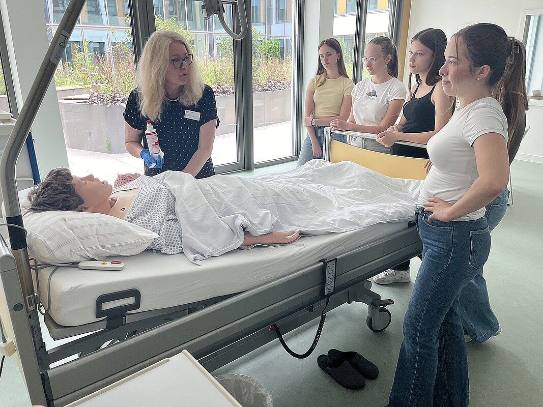 Am zweiten Sommerferientag ging es direkt mit „Offen für morgen“ weiter beim Siloah Bildungszentrum für Pflegeberufe, einer staatlich anerkannten Berufsfachschule für Pflege, deren Träger der Evangelische Diakonissenverein Siloah ist. Dort werden unterschiedliche Ausbildungsberufe angeboten, wie: Pflegefachmann (m/w/d), Altenpflegehelfer (m/w/d), OTA - Operationstechnische Assistenz (m/w/d).