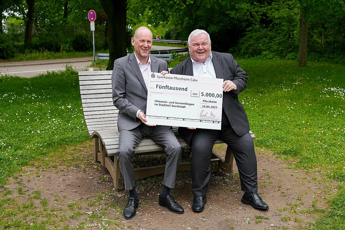 Die Sparkasse Pforzheim-Calw hat der Stadt Pforzheim vier sogenannte Himmelsliegen gespendet. „Ich freue mich sehr, dass wir den Bürgerinnen und Bürgern nun ein Stück mehr Aufenthaltsqualität auf dem Wartberg bieten können. Ein großer Dank geht dabei an die Sparkasse Pforzheim-Calw, die die Aufstellung dieser vier neuen Sonnenliegen möglich gemacht hat“, freut sich Erster Bürgermeister Dirk Büscher. Die Liegen stammen aus der Produktion der Lebenshilfe und befinden sich auf dem Wartberg in unmittelbarer Nähe des Freibades, einer beliebten Gegend für ausgedehnte Spaziergänge und ein viel frequentierter Aufenthaltsort für Jugendliche.