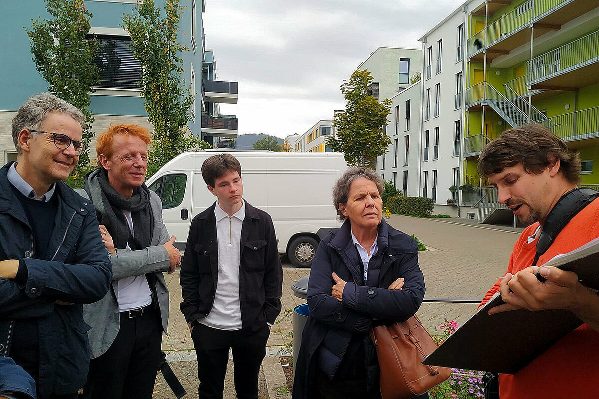 Aber auch im Gespräch mit Baudezernent Martin Haag sowie Mitgliedern der Projektgruppe des derzeit in der Entwicklung befindlichen Gebiets Kleineschholz informierten sich die Teilnehmenden über die verschiedenen Formen des Konzeptverfahrens, die dort Anwendung finden. Haag betonte in seiner Begrüßung, dass mittlerweile trotz festen Grundsätzen der Konzeptvergabe, immer wieder Umsteuerung und Experimentierfreude gefragt ist. Der Dialog mit der Politik und Fachleuten spielt eine zentrale Rolle. Ebenso wichtig seien die Bedarfe der Gesellschaft. Freiburg im Breisgau hat ebenso wie viele andere Städte die Aufgabe, Wege zu finden, wie Qualität, Vielfalt und preiswerter Wohnraum geschaffen werden kann.
