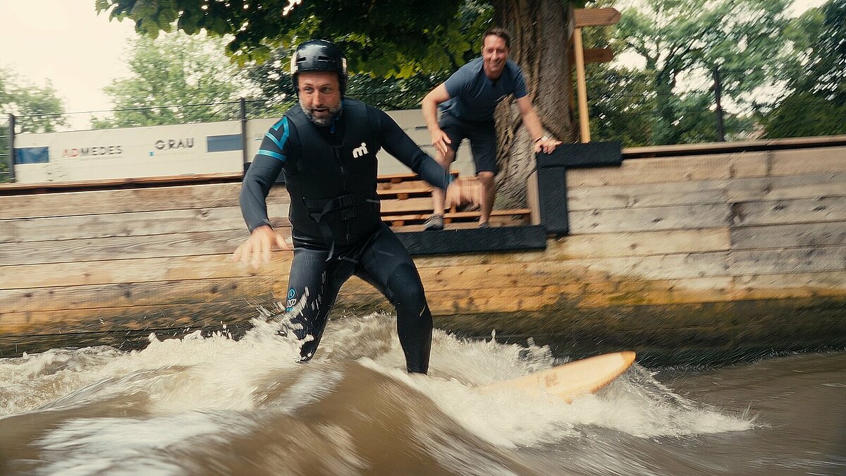 Begleitet wurde der Influencer bei seinem etwas anderen Städteurlaub von Isabell Prior, Tourismusleiterin des WSP, die den Erlebnistag für Ripke organisiert hat. Mit dem Fahrrad ging es für Ripke und Prior zur ersten Station, dem Gasometer Pforzheim, wo ihn die Betriebsleiterin des Gasometers, Angelika Taudien, begrüßte. Beeindruckt vom Riesenpanorama ging es weiter zur nächsten Station, der blackforestwave. Dort unternahm er seine ersten Surfversuche bevor es zu anschließend zu Schmuckdesignerin Jasmina Jovy ging. Den Abend ließ er bei einem wunderschönen Sonnenuntergang auf der Strandbar SP6 ausklingen. Auf seinem Instagram Kanal und dem von Stadt. Land. Enz. konnten Fans seiner erlebnisreichen Reise durch die Stadt folgen und dabei Blicke hinter die Kamera werfen. Dabei ist ein unterhaltsamer Imageclip entstanden, welcher am Donnerstag, 18. August, ab 11.30 Uhr bei auf dem YouTube-Kanal Urlaubsland BW www.youtube.com/c/UrlaubslandBW erscheint.