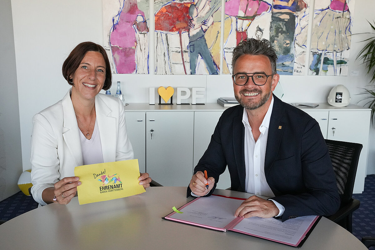 Die Stadt Pforzheim würdigt das Engagement ihrer ehrenamtlich Tätigen künftig mit der Ehrenamtskarte Baden-Württemberg und ergänzt damit die Anerkennungskultur in Pforzheim. Oberbürgermeister Peter Boch unterzeichnete hierzu im Beisein von Susanne Wacker, Beauftragte für Bürgerbeteiligung und Ehrenamt, die Kooperationsvereinbarung mit dem Ministerium für Soziales, Gesundheit und Integration.