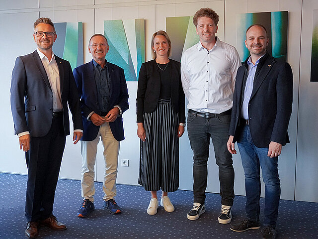 Oberbürgermeister Peter Boch (von links), Stadtwerke-Geschäftsführer Herbert Marquard, die TC Eutingen Vorstände Sina Burghard und Ian Hettmanczyk sowie Eutingens Ortsvorsteher Andreas Renner freuen sich über den neuen Pachtvertrag