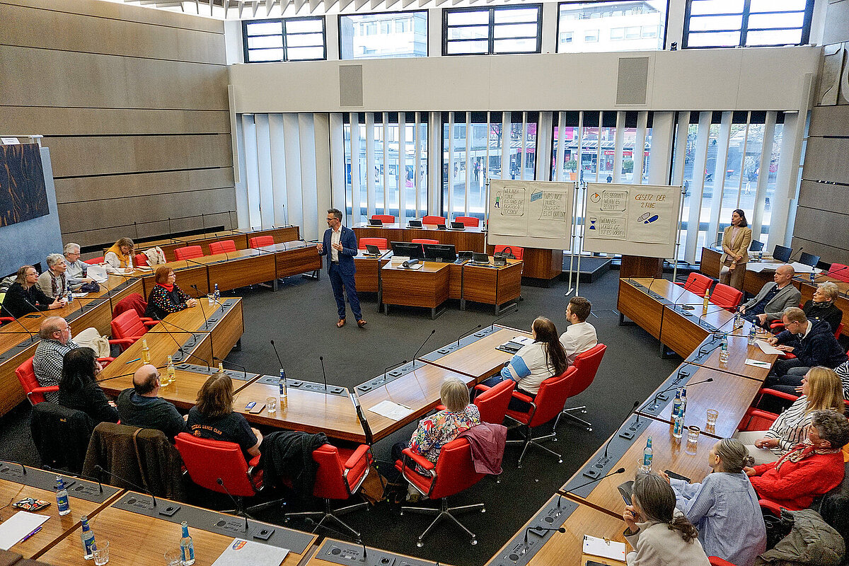 Oberbürgermeister Boch betonte in seiner Begrüßung die Bedeutung des ehrenamtlichen Engagements für die Stadtgesellschaft: „Sie leisten nicht nur wertvolle Arbeit, sondern sind ein lebendiges Beispiel für die Kraft des Miteinanders und der Solidarität.“ Der Rathauschef stellte bereits bestehende sowie geplante Maßnahmen der Stadtverwaltung für mehr Sichtbarkeit des vorhandenen Engagements vor. Dazu gehören unter anderem der städtische Ehrungsabend, für den in diesem Jahr eine Rekordzahl an Ehrungsvorschlägen eingereicht wurden. Außerdem werden in Kürze die neuen Podcasts der FRAG - Freiwilligenagentur Pforzheim | Enzkreis veröffentlicht, die das Engagement in den Fokus rücken.