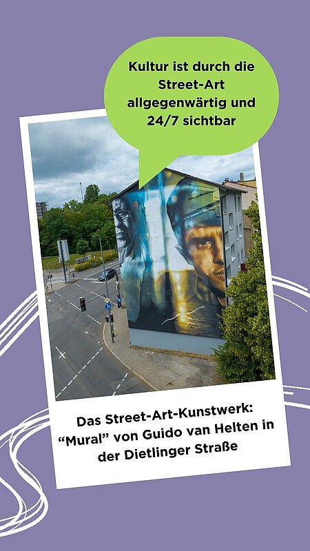 Wer einmal mit offenen Augen durch unsere Stadt läuft, kann auf wunderschöne Fassadenkunstwerke stoßen. So zum Beispiel auch in der Dietlinger Straße, wo Ihr das Street-Art-Kunstwerk: „Mural“ von Guido van Helten bewundern könnt.