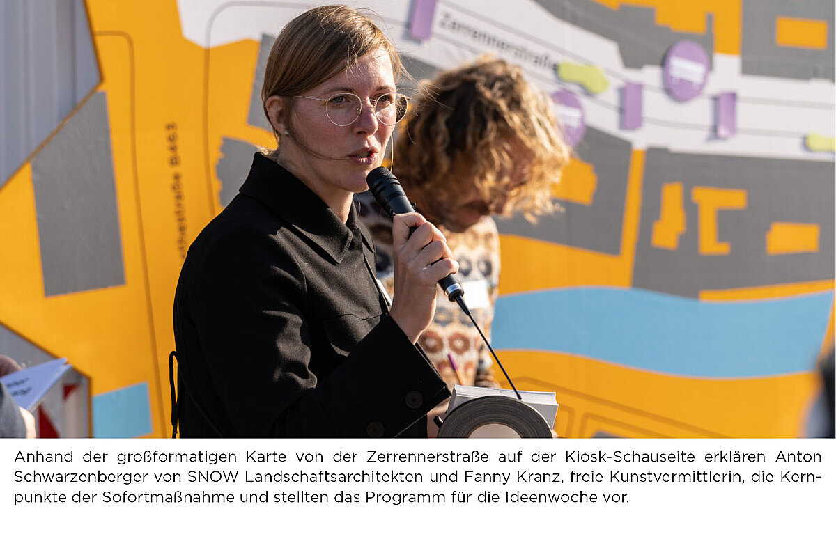 Während der Ideenwoche vom 9. bis 16. Oktober 2021 wurde ein eigens ausgestatteter Bauwagen als KIOSK_Z am Waisenhausplatz zum Zentrum aller Veranstaltungen und zur öffentlichkeitswirksamen Anlaufstelle: Täglich von 13 bis 18 Uhr lud der KIOSK_Z zum Austausch über die verschiedenen Identitäten und Nutzungen des Straßenzugs ein. Bürgerinnen und Bürger konnten sich dort informieren, ihren Wünschen für die Zerrennerstraße Gehör verschaffen und selbst kräftig MITMISCHEN.
