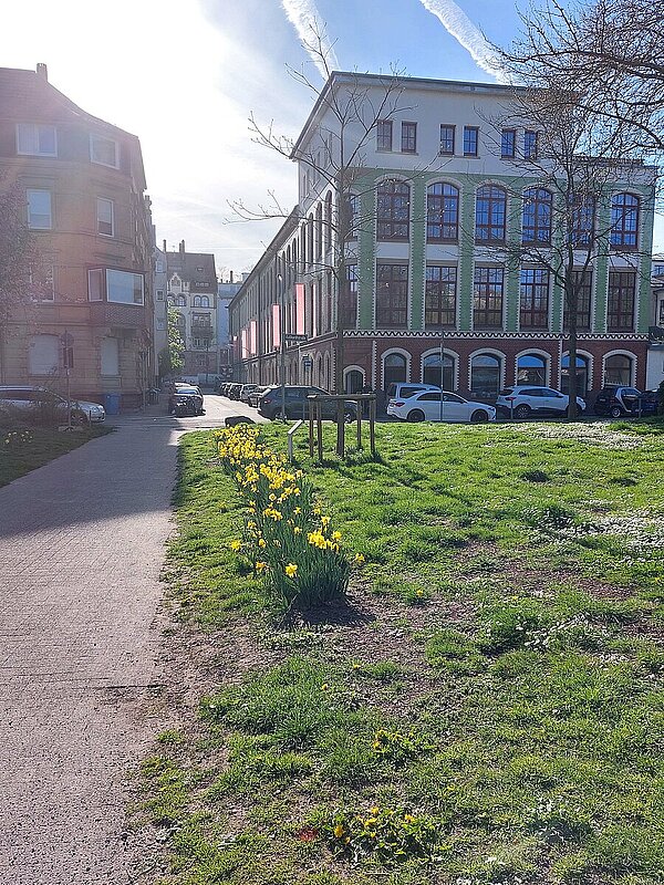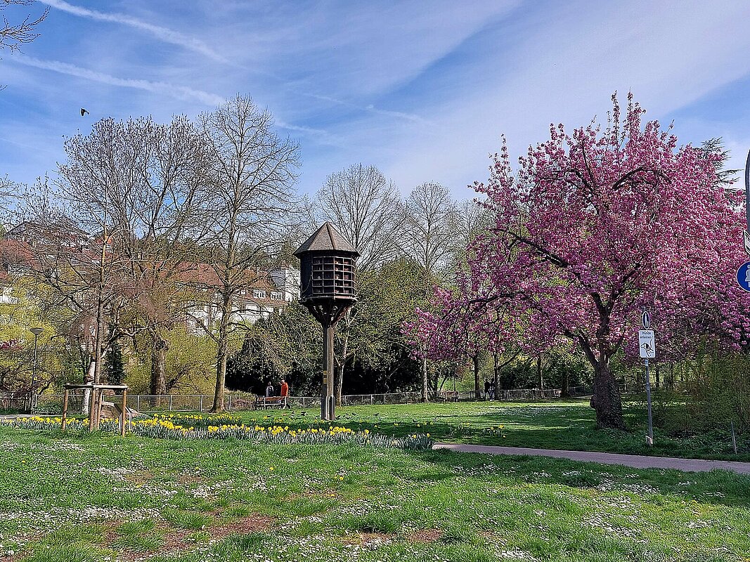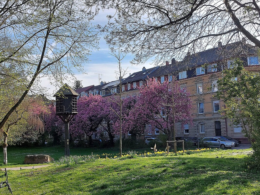Der Pforzheimer Künstler Harald Kröner hat die Grünfläche zwischen Oberer Rodstraße und Lameystraße zu einer besonderen Alltagsinsel gemacht.